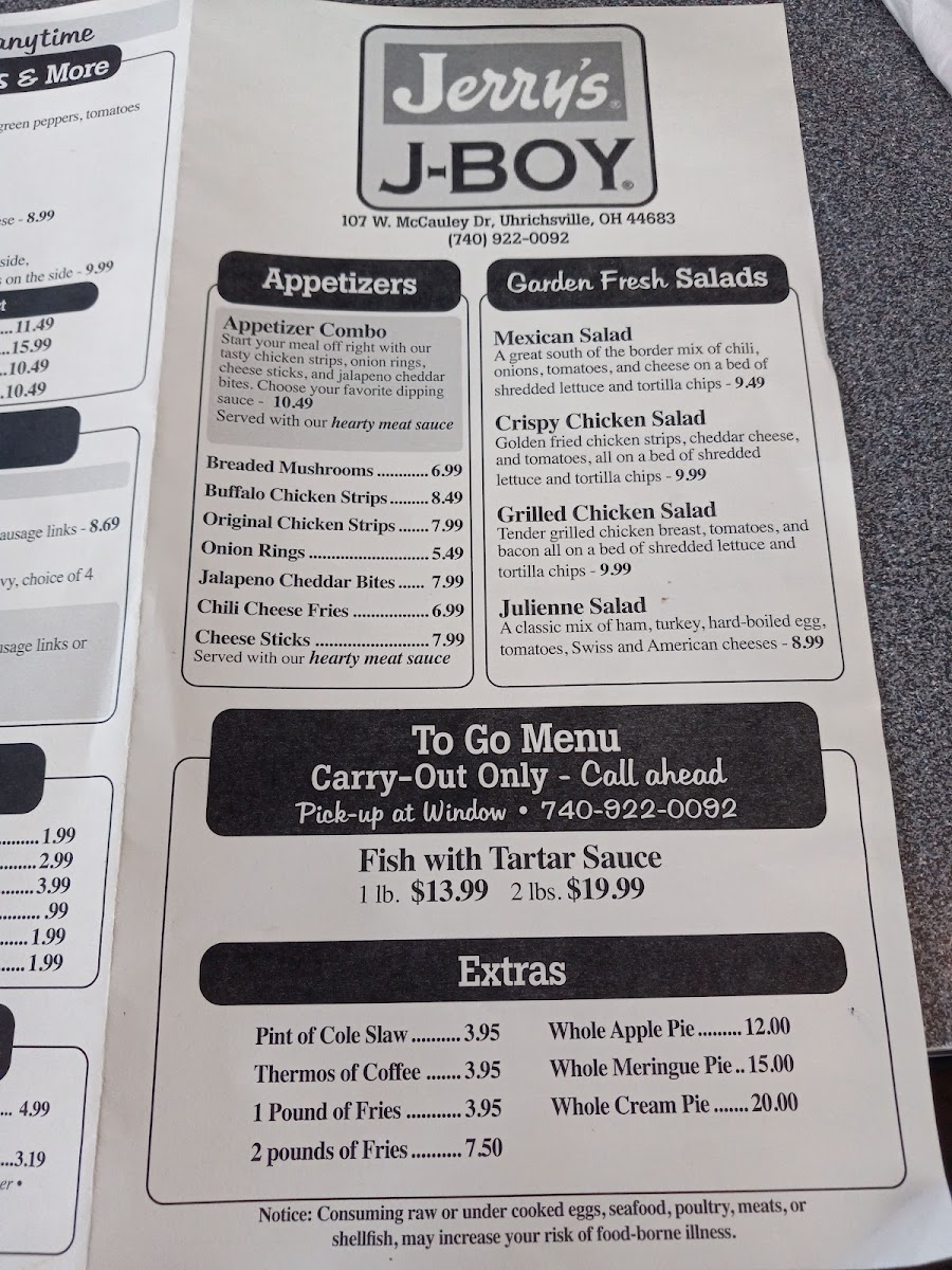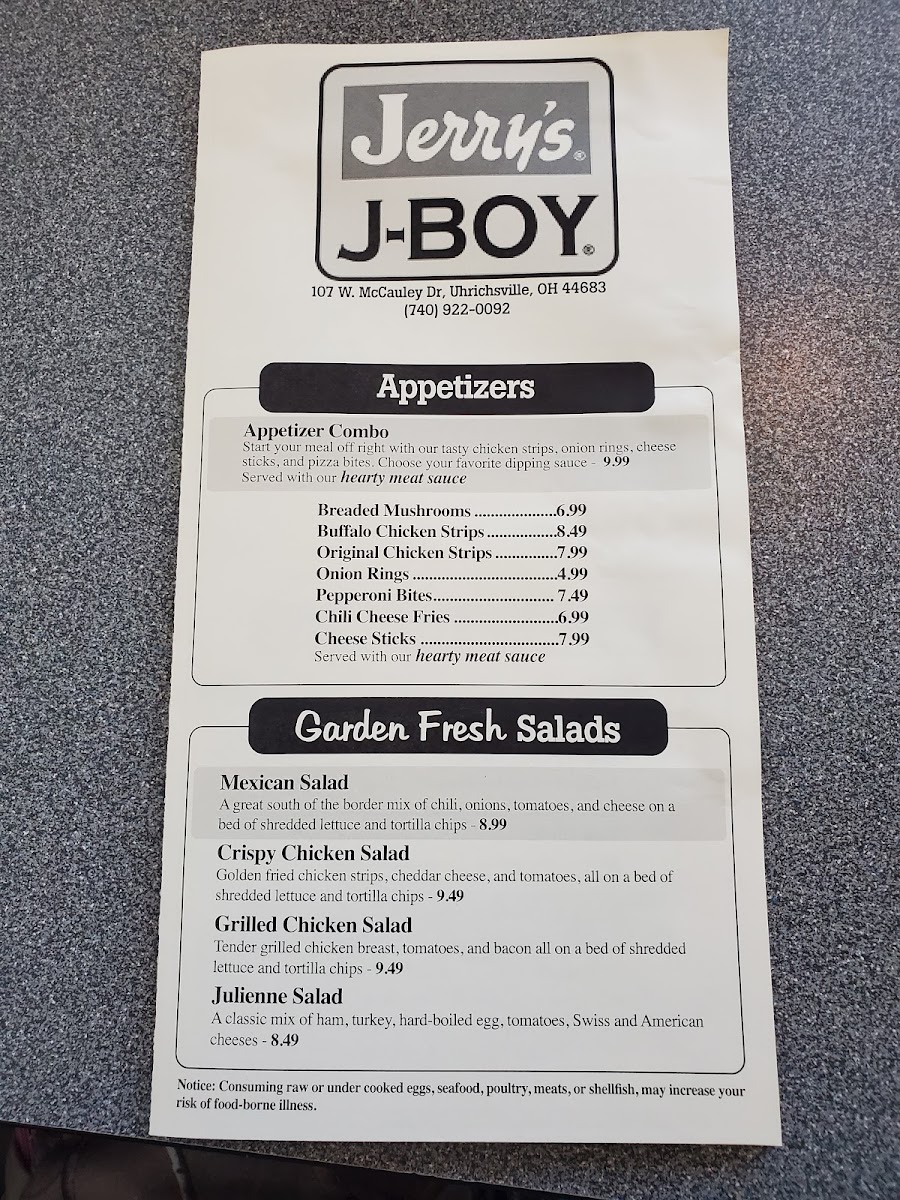 Jerry's Great American Restaurant Menu